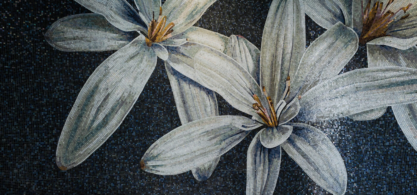 For all design types and textures, mosaics provide a complete look whether performing a complete mosaic surface or used to accent walls, floors or ceilings. Some of the mosaic types include: Glass, Resin, Stone, Tile, and Cork.